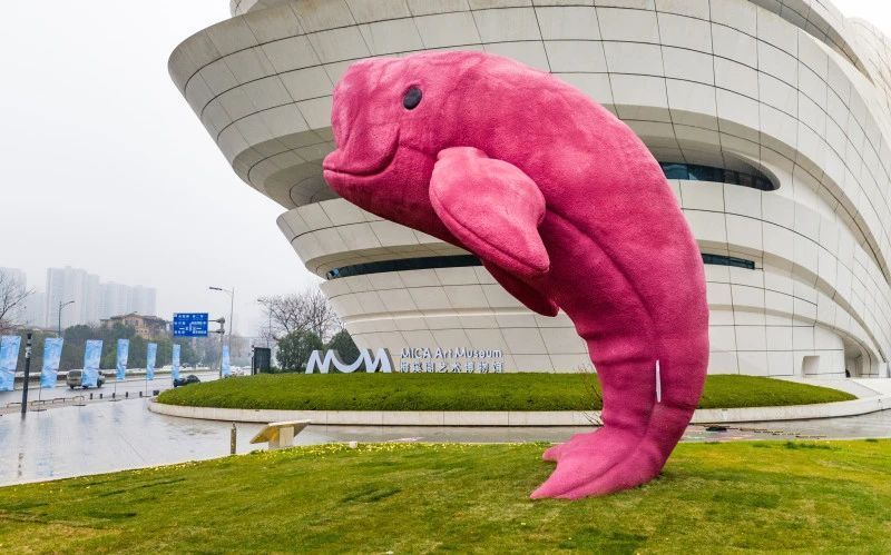 梅溪湖艺术博物馆外矗立的霍夫曼新作《粉色江豚》。罗钟杰 摄